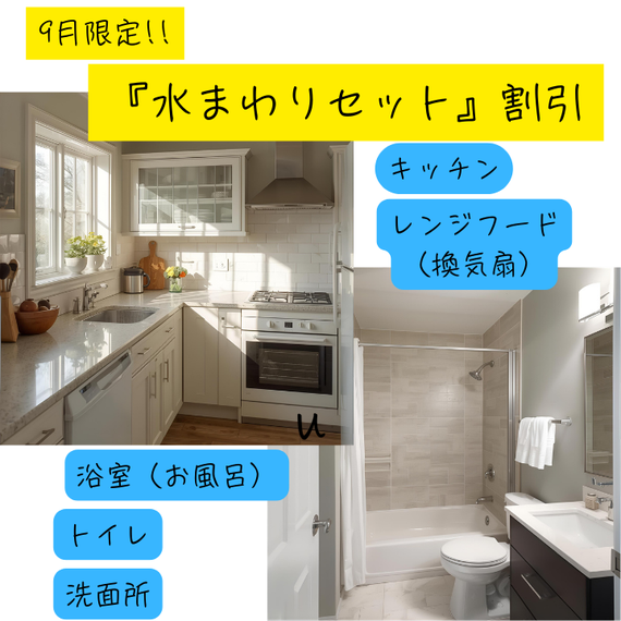 ・予約時に、『水まわりセット』割引希望をご申告ください。